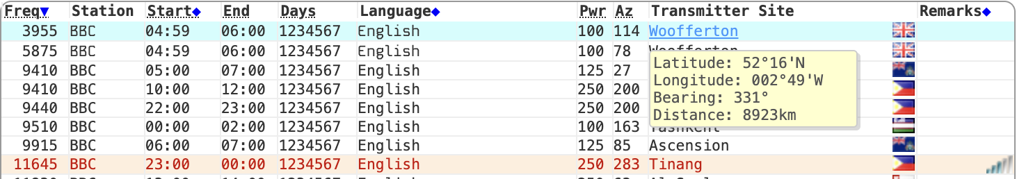 shortwave info 처럼 대부분의 단파 스케줄 조회 사이트는