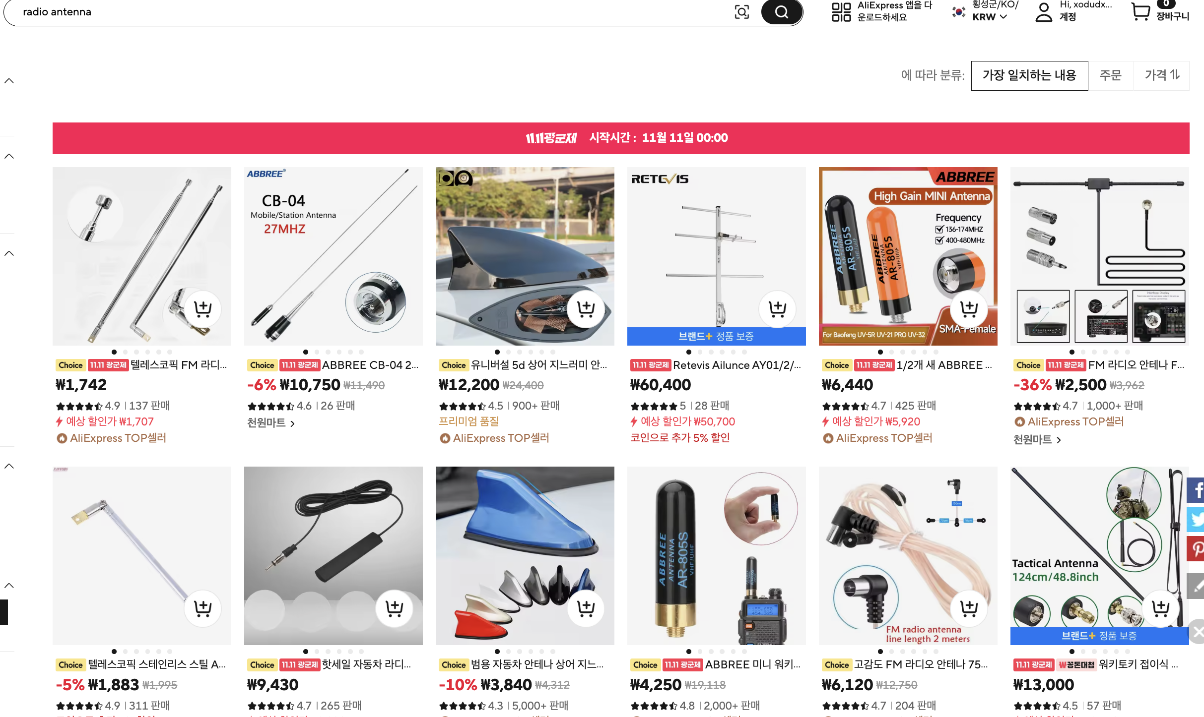 안테나는 알리에서도 저렴하게 판매중이기 때문에